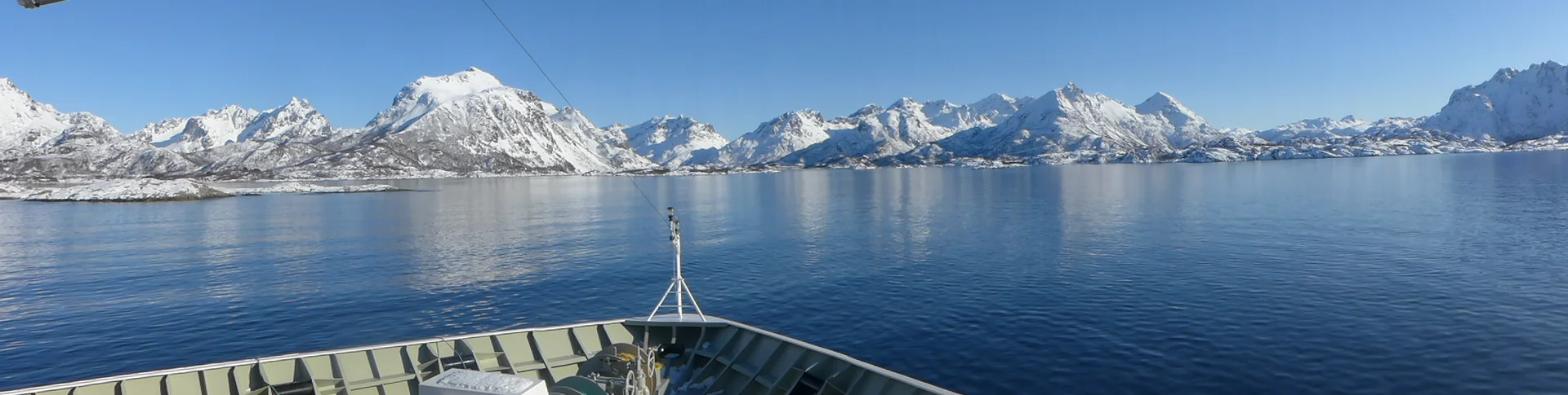 Wir nähern uns wieder der Inselgruppe der Lofoten – eine der schönsten Landschaften Nor- wegens. In Stokmarknes begann Richard With 1893 mit den Post- schiffreisen entlang der norwegi- schen Küste. Hier finden Sie auch das Hurtigruten Museum.