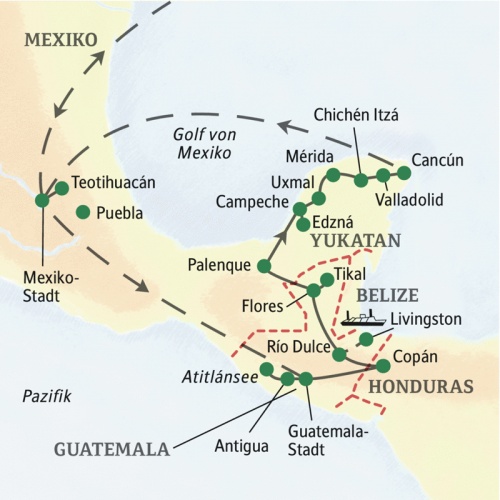 Mittelamerika - eine landschaftliche und kulturelle Vielfalt, die mit Mittelmaß rein gar nichts zu tun hat! Ein lebendiges Bild der großen Hochkulturen Altamerikas - von den Mayas bis zu den Azteken - bietet Ihnen diese Studiosus-Reise! In Mexiko erleben wir die Metropole Mexiko-Stadt, bestaunen die Pyramiden von Teotihuacán, genießen die Aussicht in den Regenwald von Palenque und entdecken Yukatan. Guatemala zeigt sich nicht nur am Atitlánsee von seiner schönsten Seite. Die Märkte sind genauso lebendig wie die Begegnungen mit der indigenen Bevölkerung: Lernen Sie eine Lebensart verstehen, die von Traditionen geprägt ist. Besonders spannend: unser Abstecher nach Copán in Honduras, ins Bilderbuch der Maya-Archäologie.