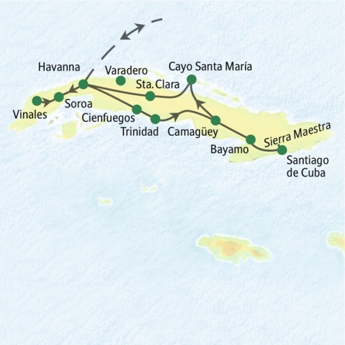 In Santa Clara mischt sich Kolonialcharme mit dem jungen Flair einer Unistadt. Ikone und Starschnitt des Kommunismus: Vor der Che-Guevara-Gedenkstätte erfahren wir, wie Fidels Weggefährte aus Argentinien zur Symbolfigur wurde. Ihre Reiseleiterin liest Ihnen Ches Abschiedsbrief an Fidel vor, und stilecht hören wir dazu im Bus "Hasta siempre, comandante". Abends zurück in Havanna vielleicht noch ins Cabaret Tropicana? 395 km.