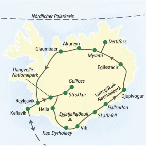Es würde zu kurz greifen, wollte man Island auf Feuer und Eis, Vulkane und Gletscher, Wasserfälle und Geysire reduzieren. All das gibt es, gewaltiger als anderswo in Europa. Dazwischen aber haben sich die Nachfahren der Wikinger mit einem unkonventionellen Lebensstil eingerichtet. Und immer wieder gelingt es dem kleinen sympathischen Volk am Polarkreis, die Aufmerksamkeit der Welt auf sich zu ziehen - mal bricht ein Vulkan aus, mal bringt die Nationalmannschaft die Hierarchien im internationalen Fußball durcheinander. In zehn Tagen geht es einmal rund um die Insel. Und weil wir auf Luxus verzichten, ist der Preis der Reise genauso heiß wie das Feuer unter der Erde.